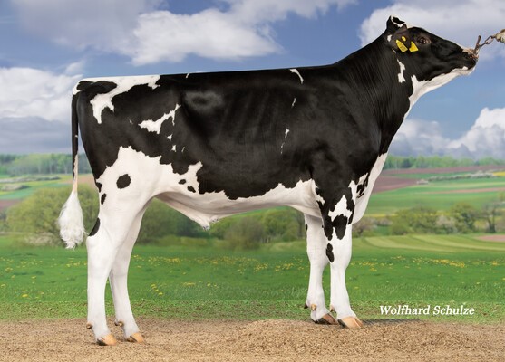 Hij geeft sterke koeien die veel melk produceren, deze dieren hebben een mooie hellende kruisligging met gemiddeld kromme benen.